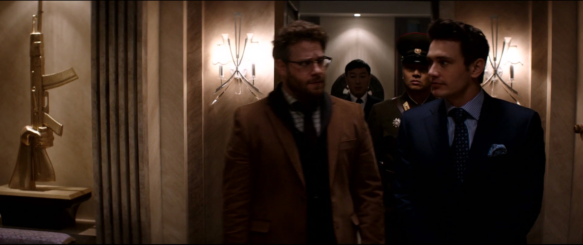 In the action-comedy The Interview, Dave Skylark (James Franco) and his producer Aaron Rapoport (Seth Rogen) run the popular celebrity tabloid TV show “Skylark Tonight.” When they discover that North Korean dictator Kim Jong-un is a fan of the show, they land an interview with him in an attempt to legitimize themselves as journalists. As Dave and Aaron prepare to travel to Pyongyang, their plans change when the CIA recruits them, perhaps the two least-qualified men imaginable, to assassinate Kim Jong-un.