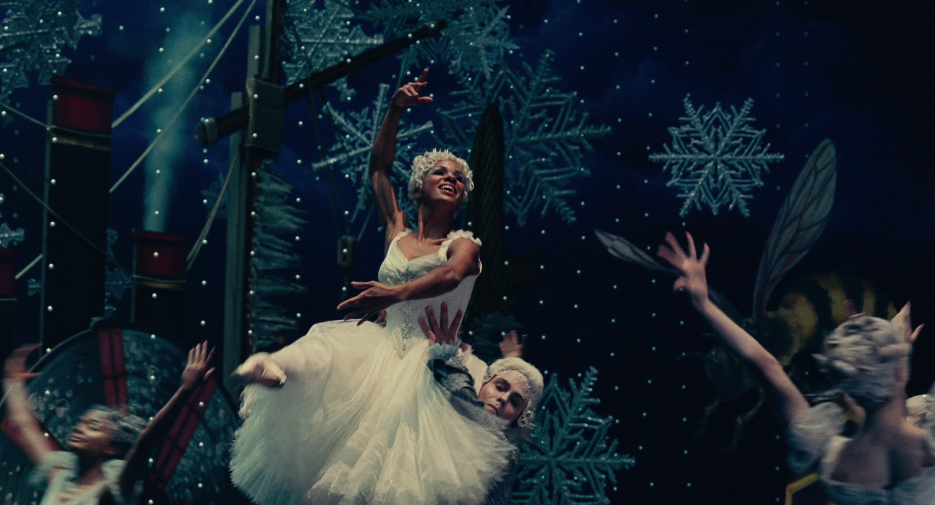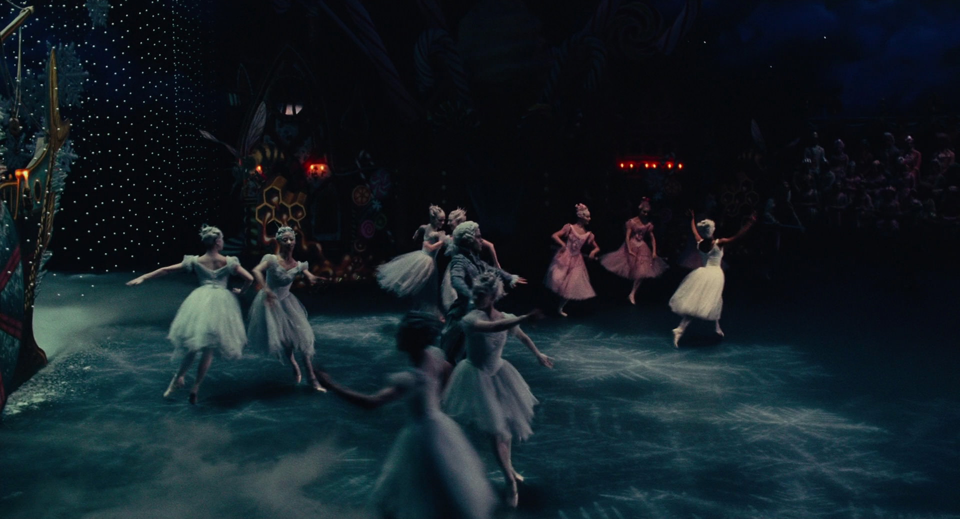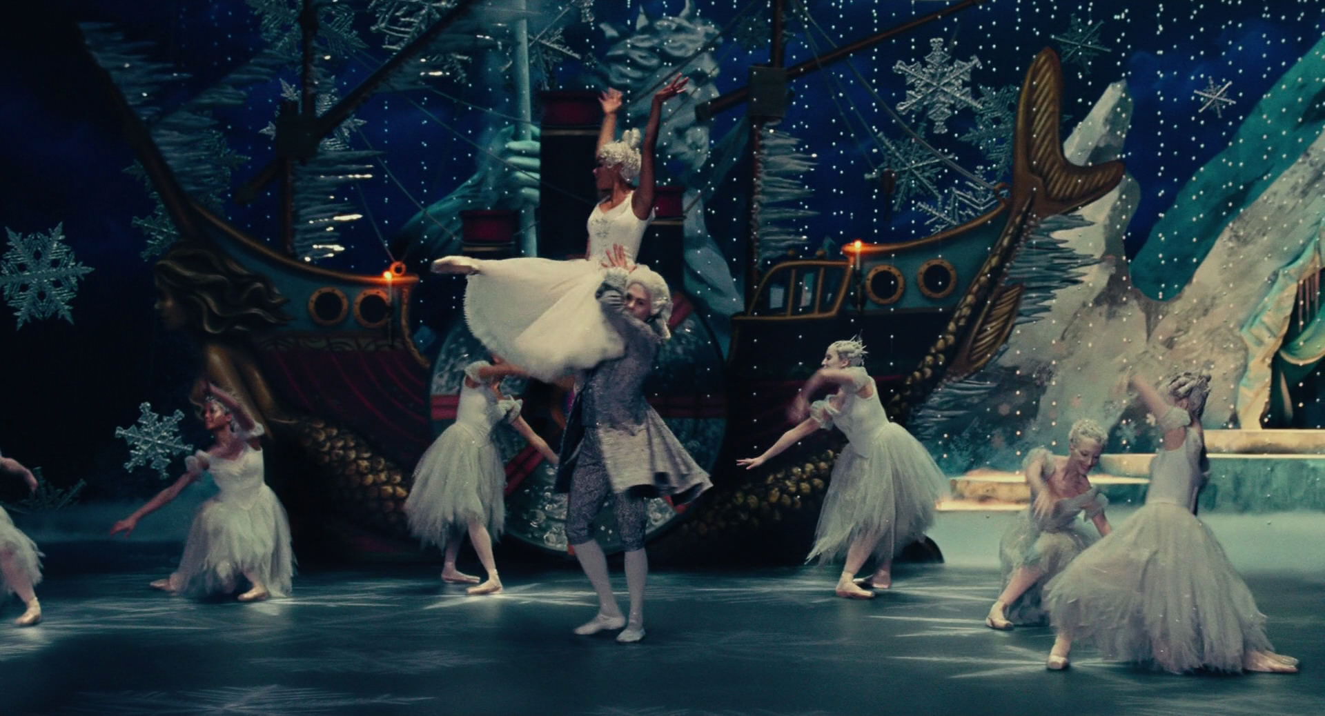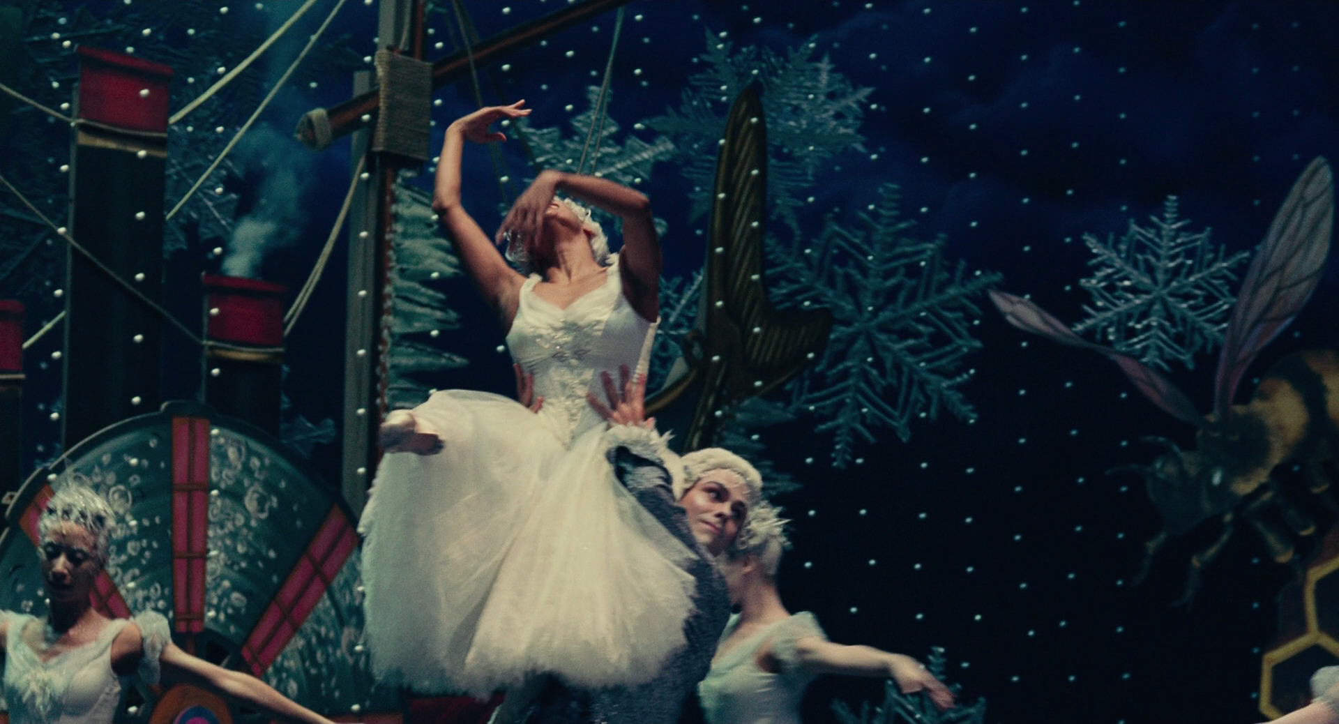 All Clara wants is a key – a one-of-a-kind key that will unlock a box that holds a priceless gift from her late mother. A golden thread, presented to her at godfather Drosselmeyer’s annual holiday party, leads her to the coveted key-which promptly disappears into a strange and mysterious parallel world. It’s there that Clara encounters a soldier named Phillip, a gang of mice and the regents who preside over three Realms: Land of Snowflakes, Land of Flowers, and Land of Sweets. Clara and Phillip must brave the ominous Fourth Realm, home to the tyrant Mother Ginger, to retrieve Clara’s key and hopefully return harmony to the unstable world.