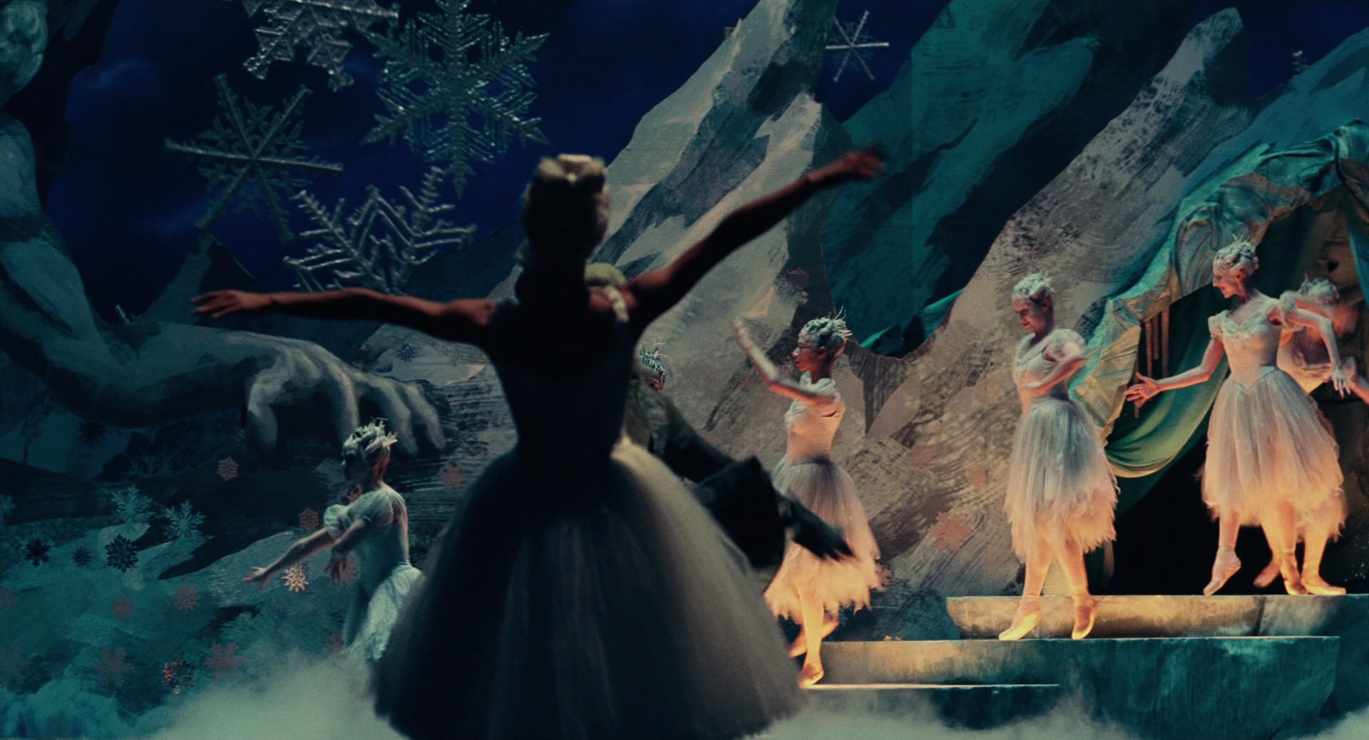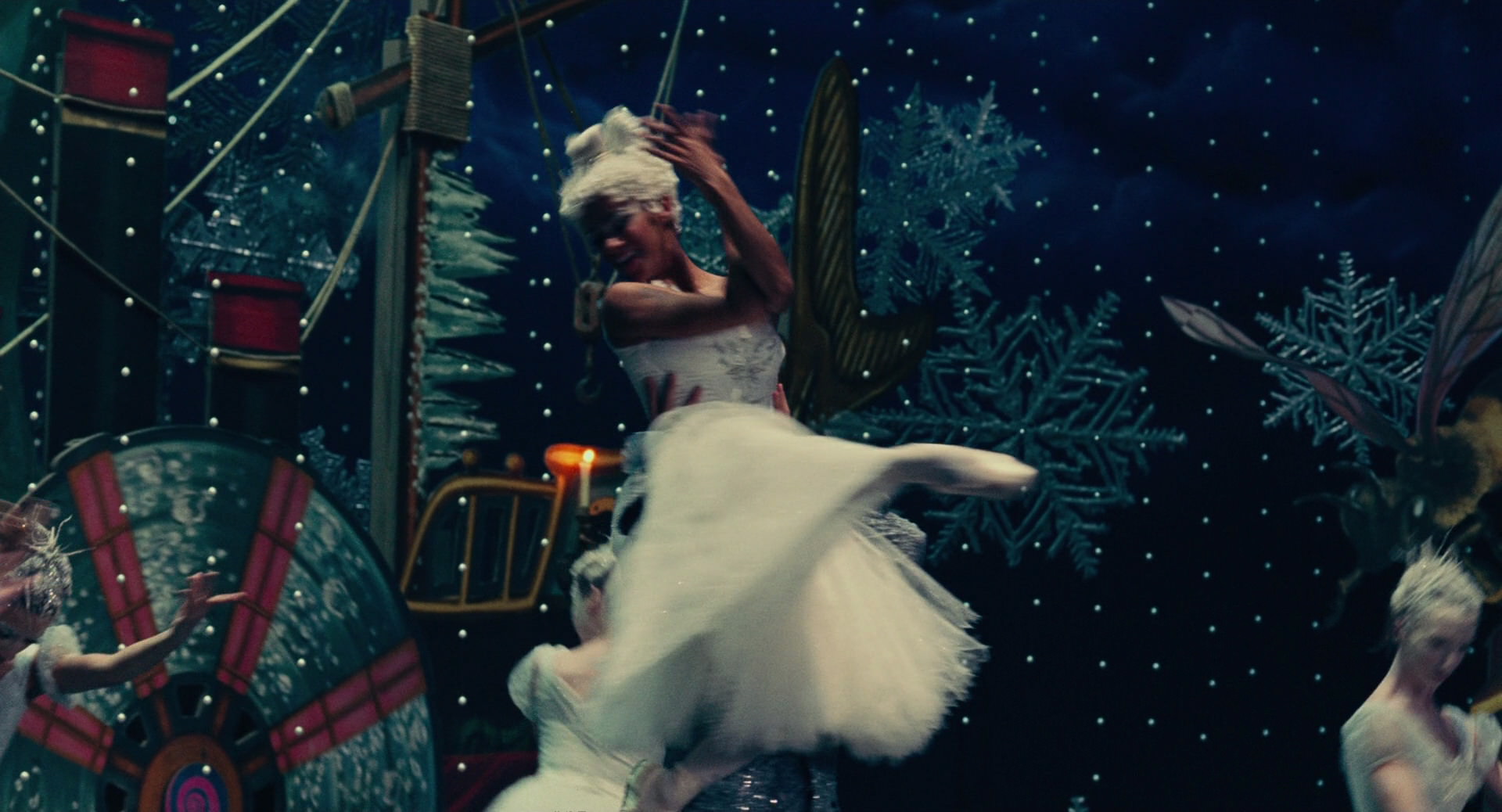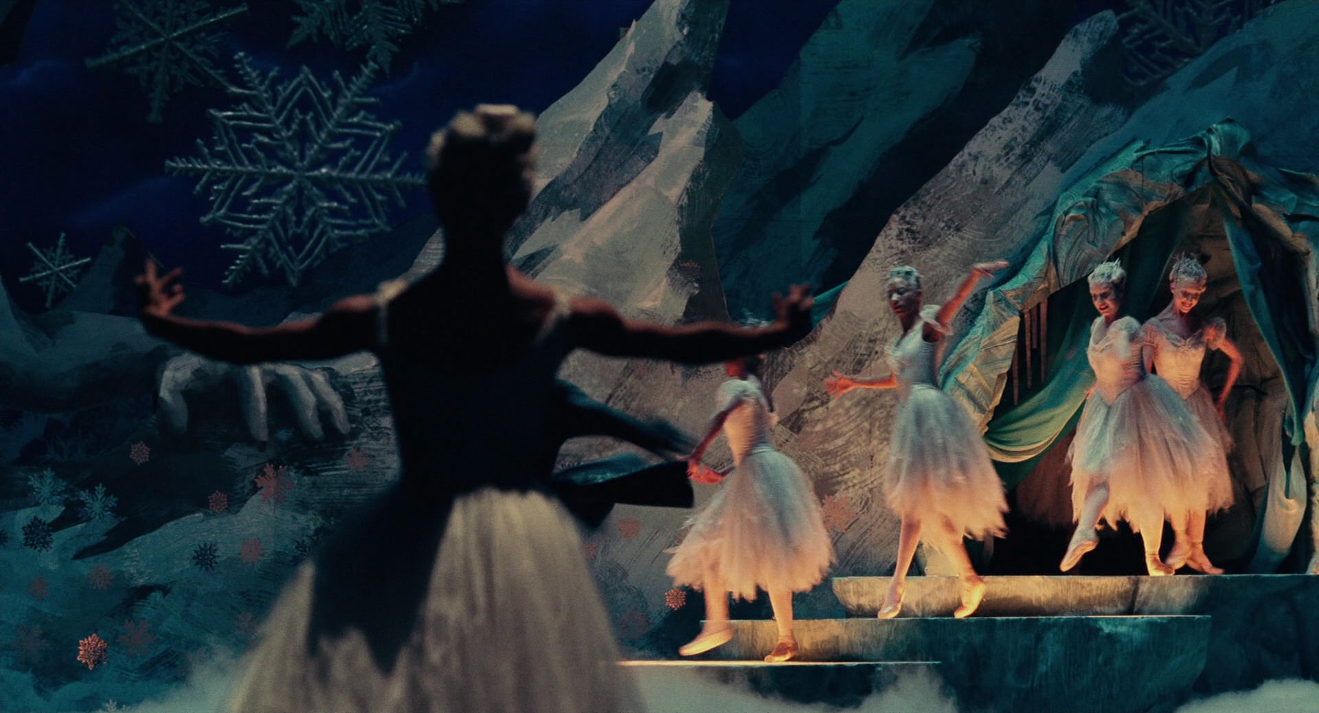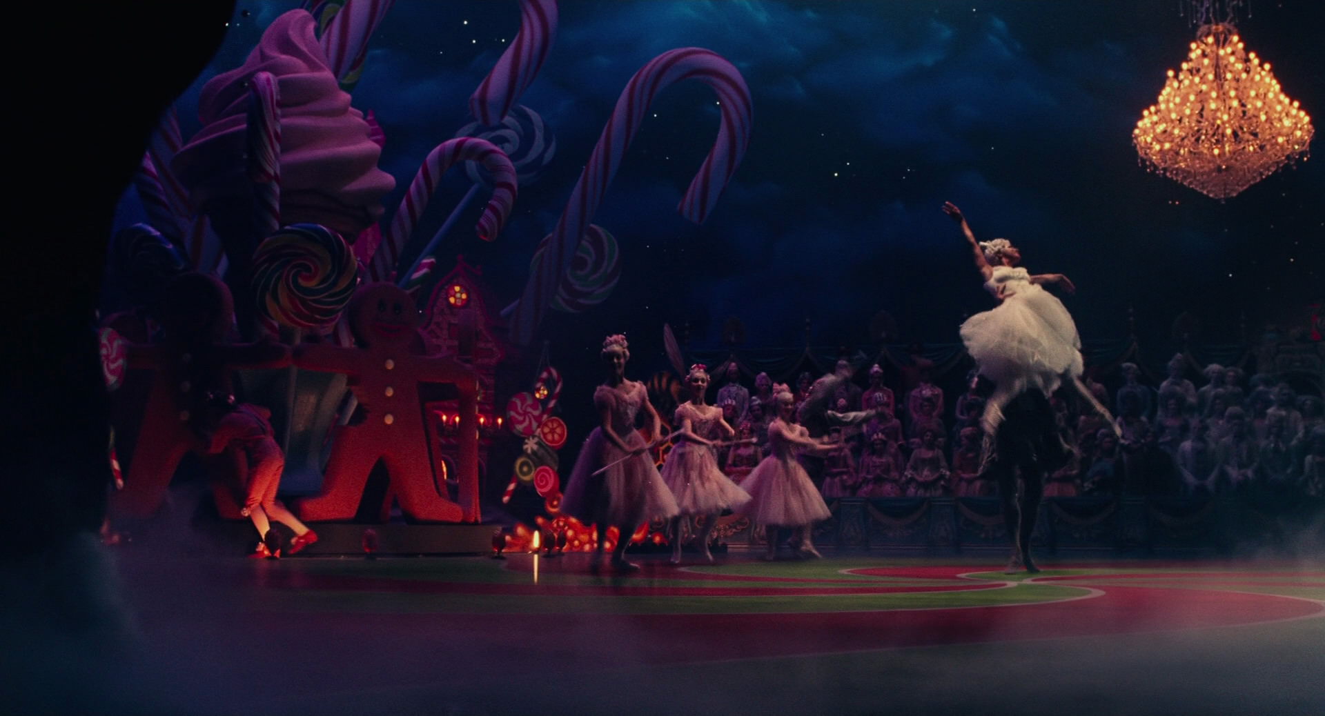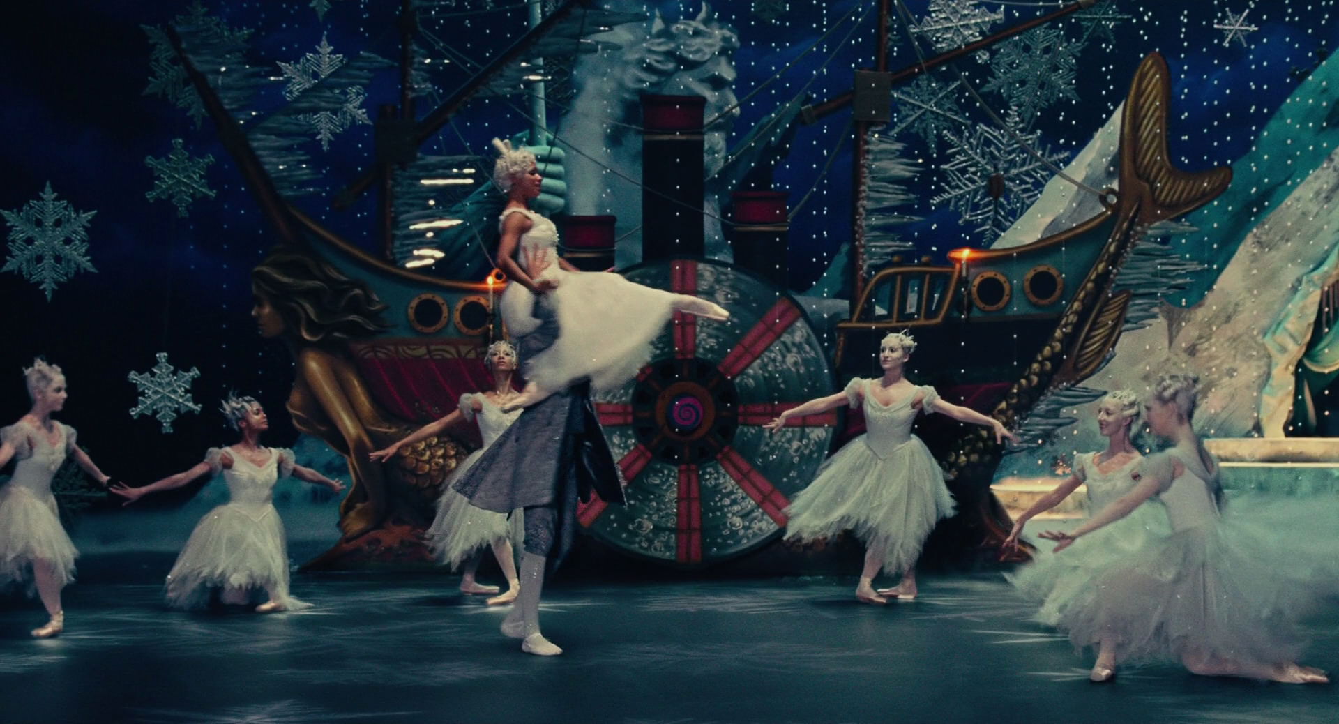 All Clara wants is a key – a one-of-a-kind key that will unlock a box that holds a priceless gift from her late mother. A golden thread, presented to her at godfather Drosselmeyer’s annual holiday party, leads her to the coveted key-which promptly disappears into a strange and mysterious parallel world. It’s there that Clara encounters a soldier named Phillip, a gang of mice and the regents who preside over three Realms: Land of Snowflakes, Land of Flowers, and Land of Sweets. Clara and Phillip must brave the ominous Fourth Realm, home to the tyrant Mother Ginger, to retrieve Clara’s key and hopefully return harmony to the unstable world.