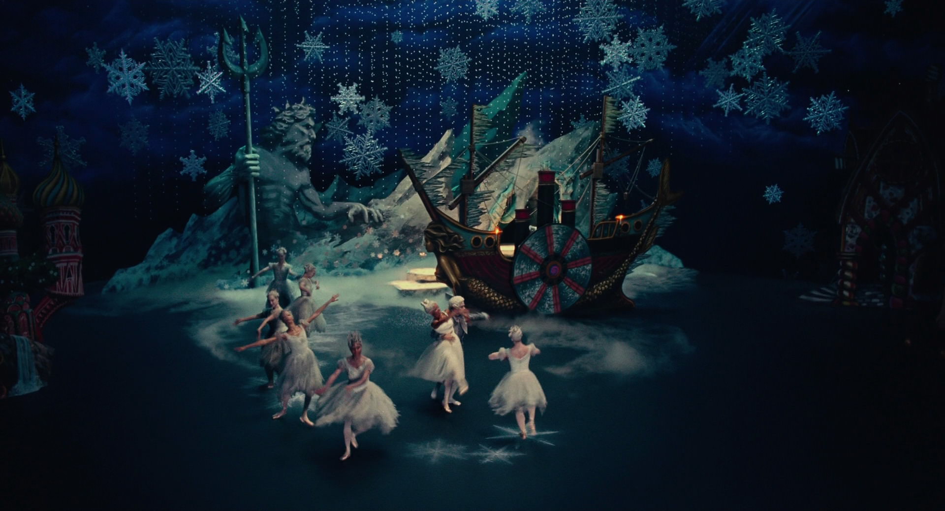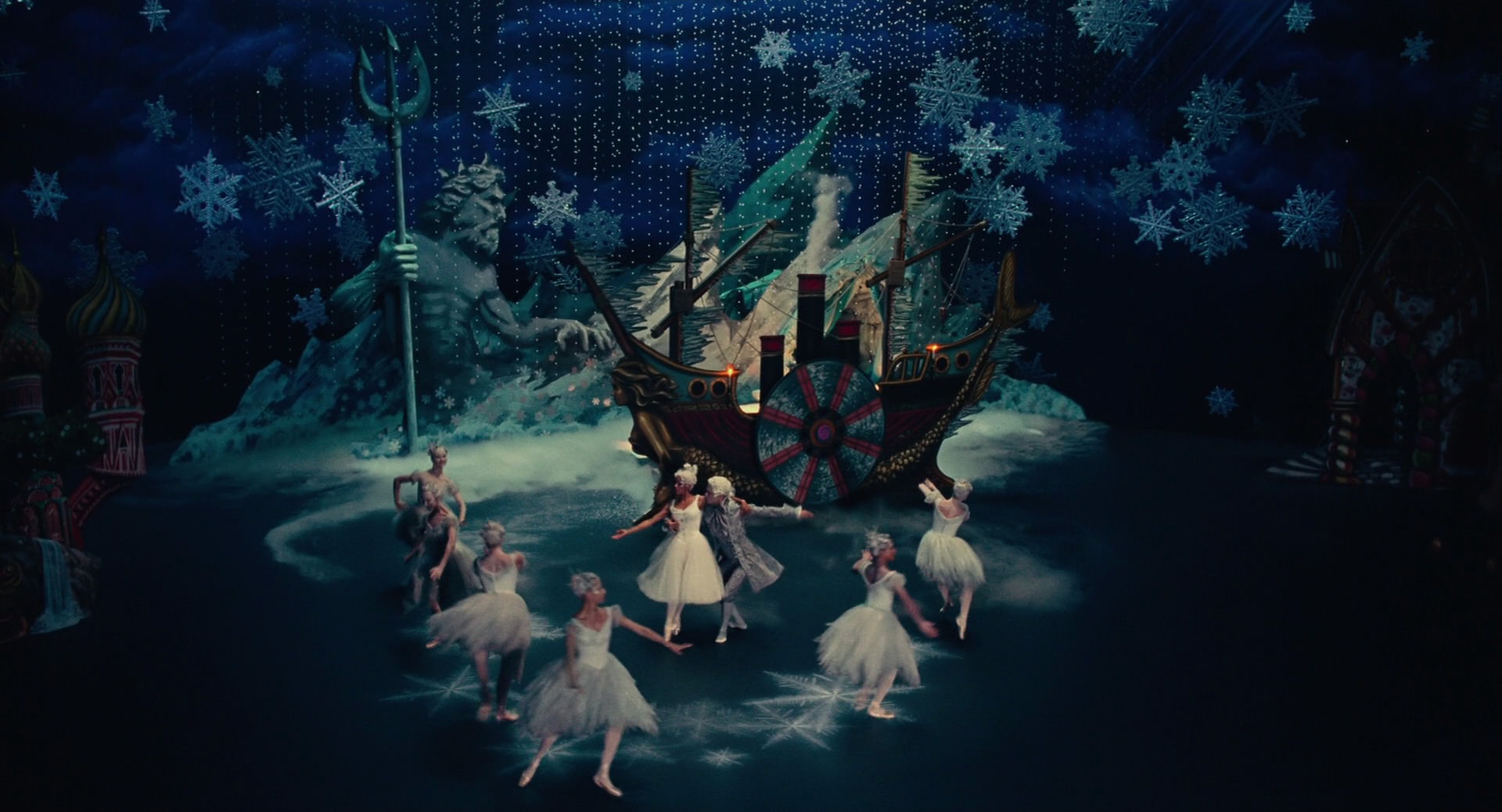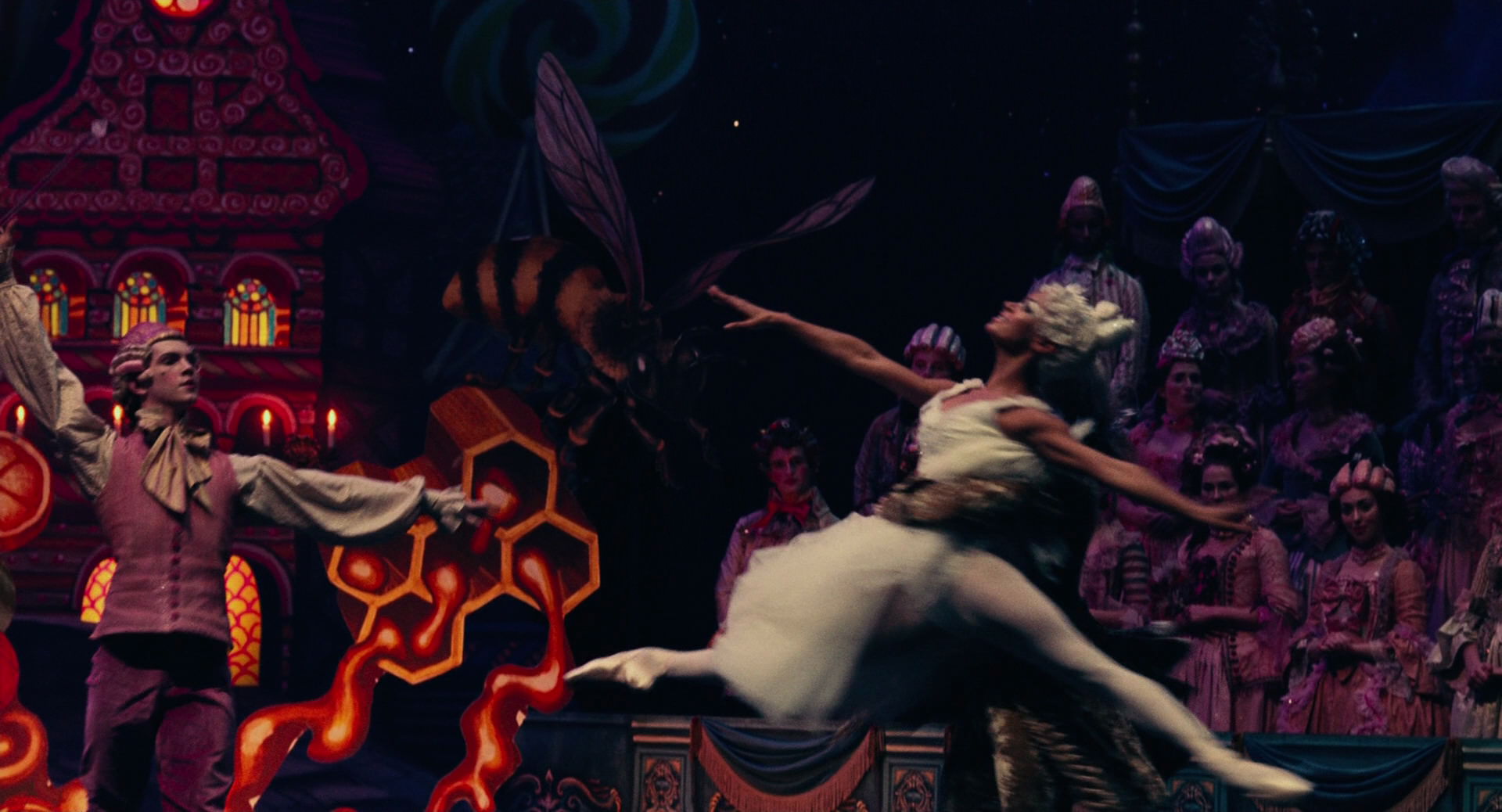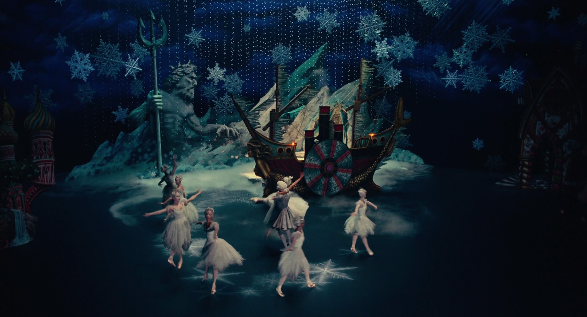 All Clara wants is a key – a one-of-a-kind key that will unlock a box that holds a priceless gift from her late mother. A golden thread, presented to her at godfather Drosselmeyer’s annual holiday party, leads her to the coveted key-which promptly disappears into a strange and mysterious parallel world. It’s there that Clara encounters a soldier named Phillip, a gang of mice and the regents who preside over three Realms: Land of Snowflakes, Land of Flowers, and Land of Sweets. Clara and Phillip must brave the ominous Fourth Realm, home to the tyrant Mother Ginger, to retrieve Clara’s key and hopefully return harmony to the unstable world.